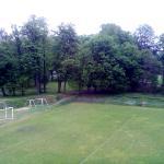 Fotbalové hřiště má kabiny a sociální zázemí.