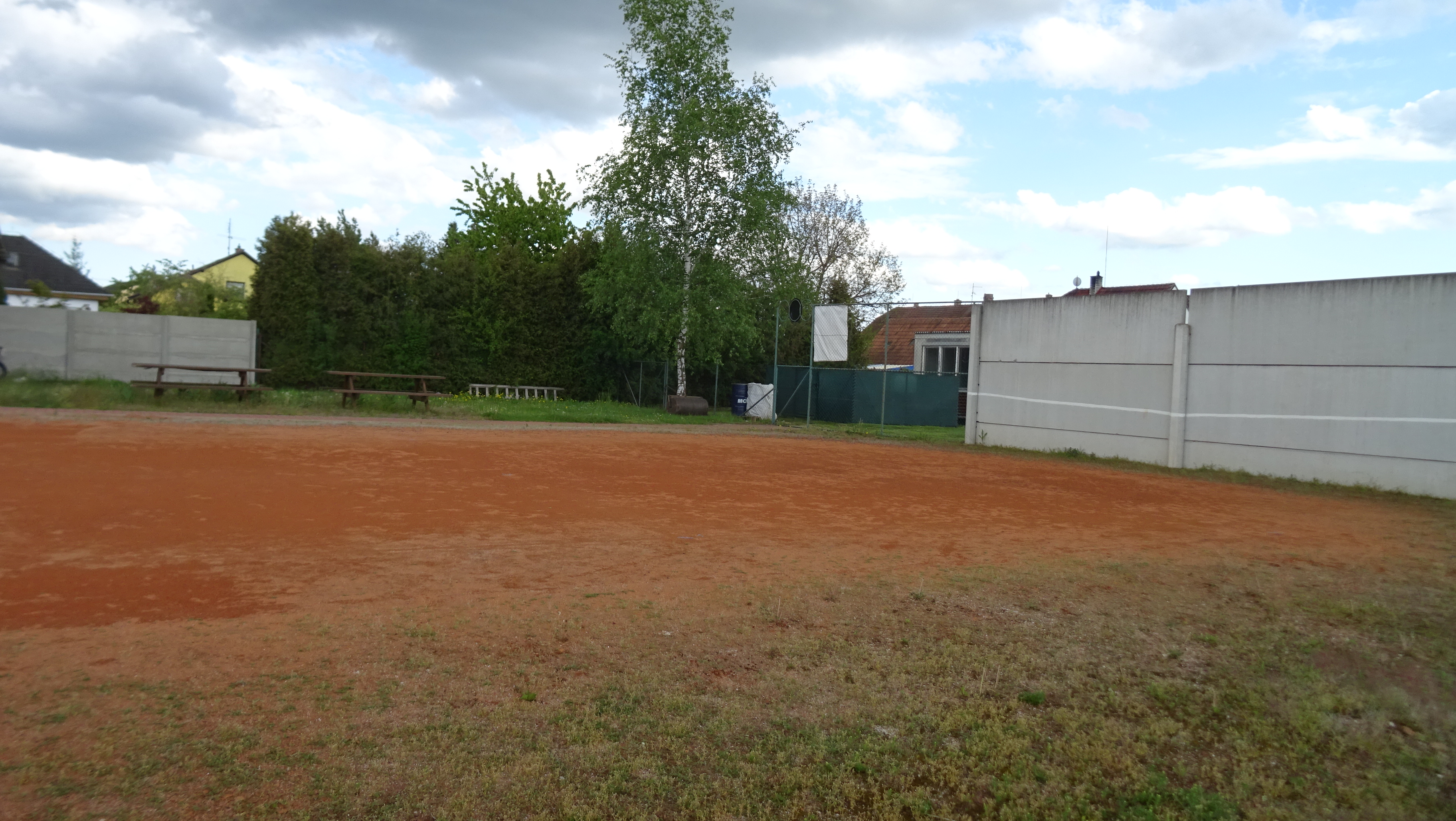 Podél tenisového kurtu jsou lavičky pro sezení nebo odkládání věcí při hře. Kurt se lajnuje vápnem. K dispozici je i tréninková zeď.