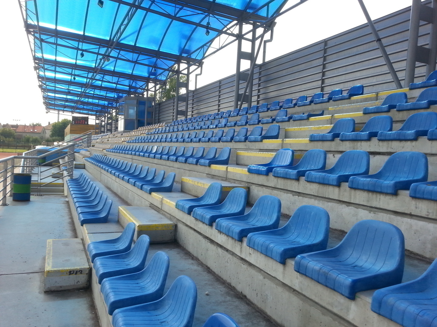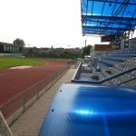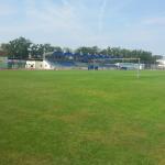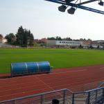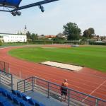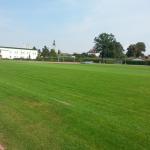Přírodní trávník se zabudovaným umělým zavlažováním. Zázemí 10-ti šaten, které jsou umístěny v tribuně.