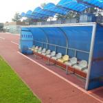 Šatny a hygienické zařízení mohou využívat sportovci v tribuně - 8 x šatna pro hráče, 1 x pro rozhodčí, 4 x sprchy, 3 x WC pro sportovce, 1 x WC pro veřejnost.