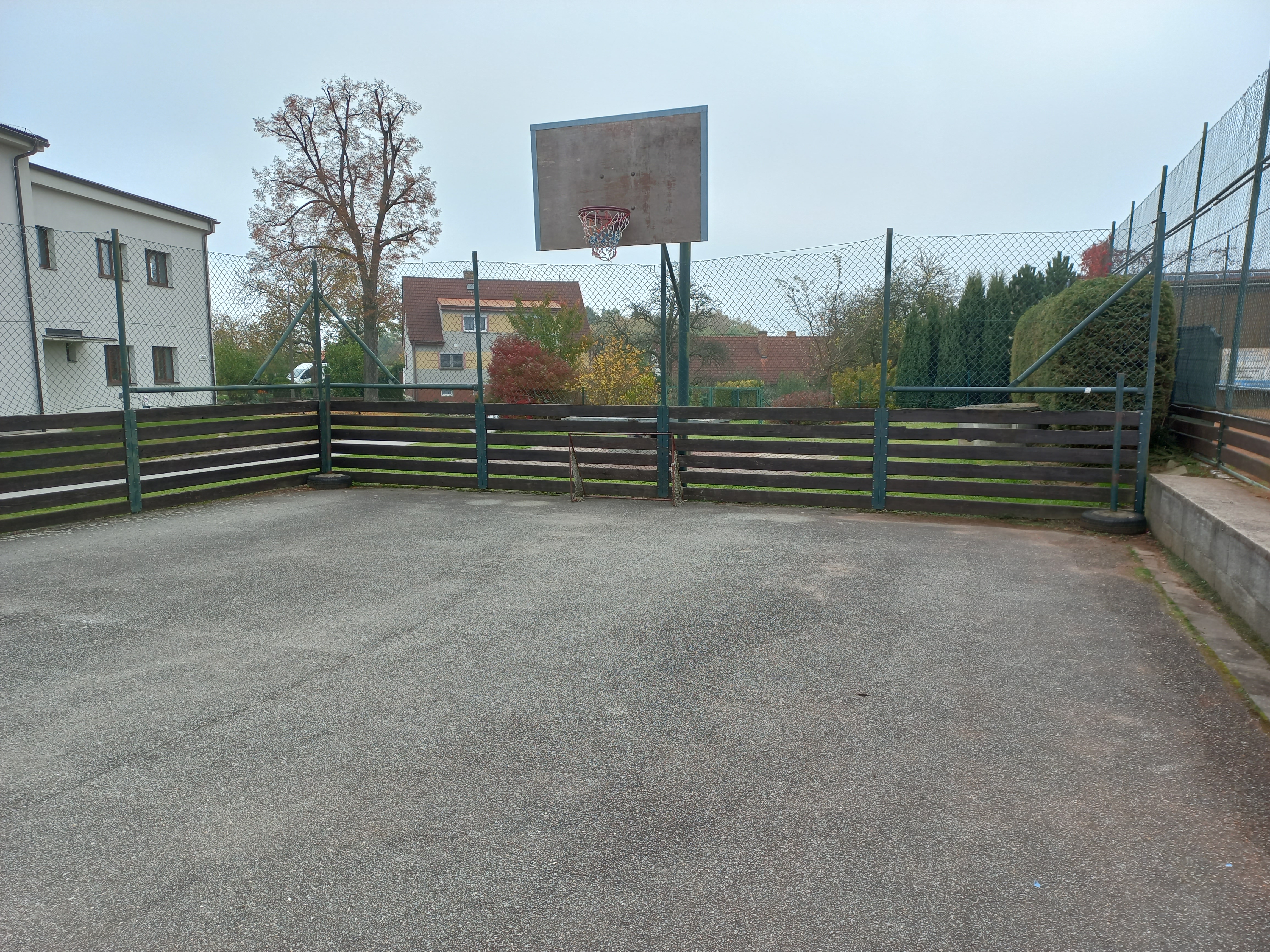 Hřiště má dřevěné mantinely a je vybavené přenosnými sloupky na síť, staršími menšími brankami vhodnými na hokejbal a basketbalovými koši. Plocha není nalajnovaná.
