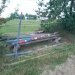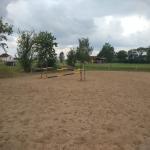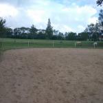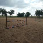 Venkovní jízdárna s překážkami (parkurové závodiště s nesoutěžními rozměry). Povrch písek.