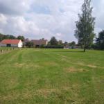 Venkovní jízdárna bez překážek s přírodním trávníkem.
