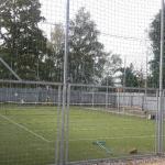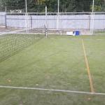 Oplocený sportovní areál s nohejbalovým hřištěm.