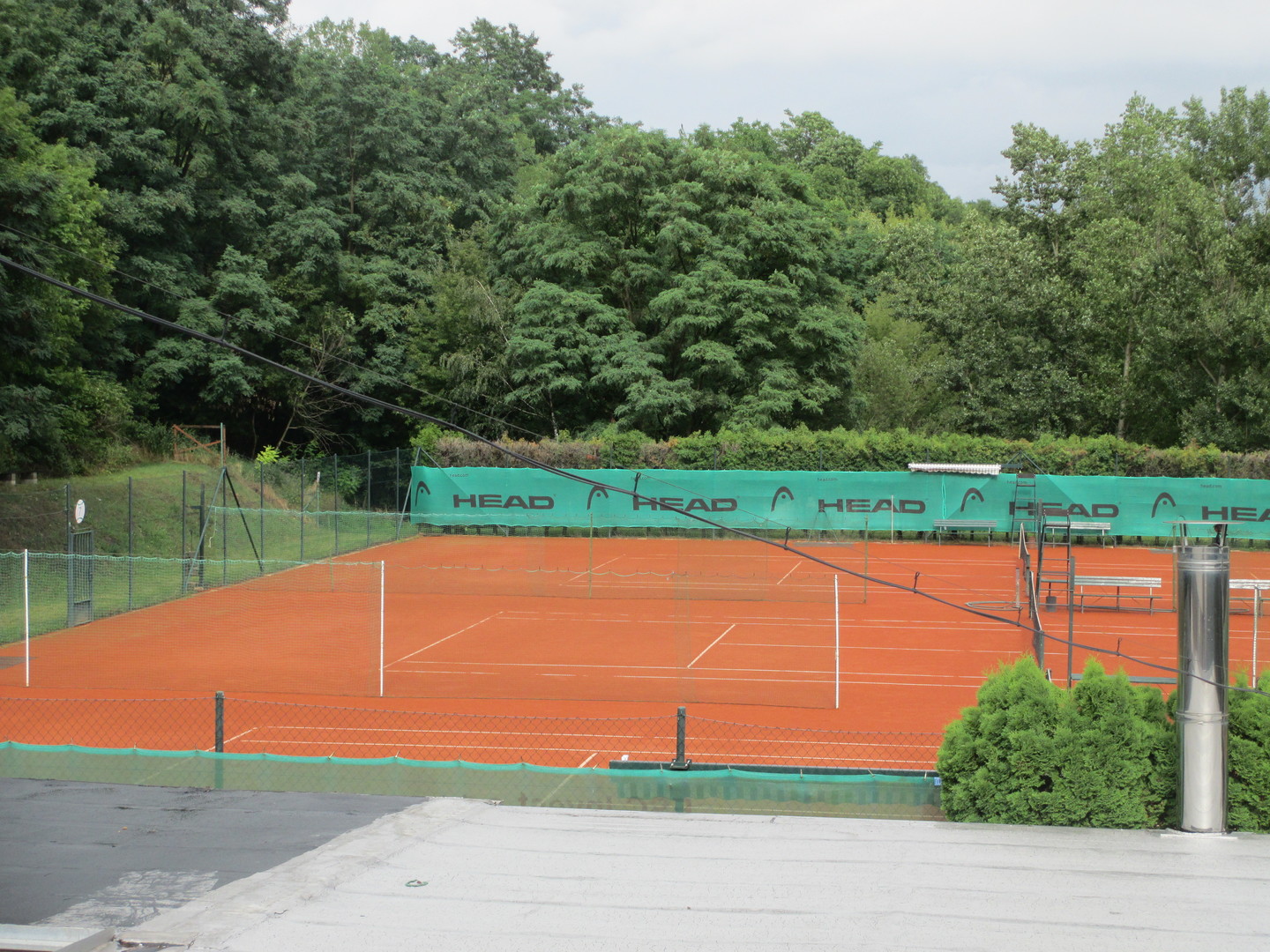 Nejnovější z kurtů v areálu stojící stranou ostatních, za živým plotem