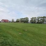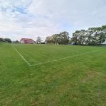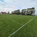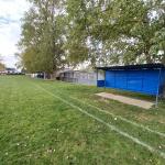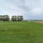 Hřiště má automatickou závlahu. Střídačky se nachází na vzdálenější straně hřiště.