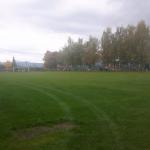 Sportovní areál s fotbalovým hřištěm a zázemím.