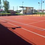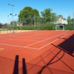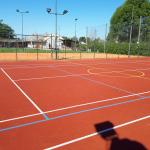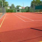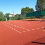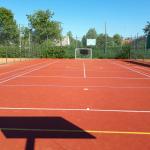 Tenisovou síť si hráči instalují před hrou. Šatny a sociální zařízení je k dispozici v šatnách TJ.